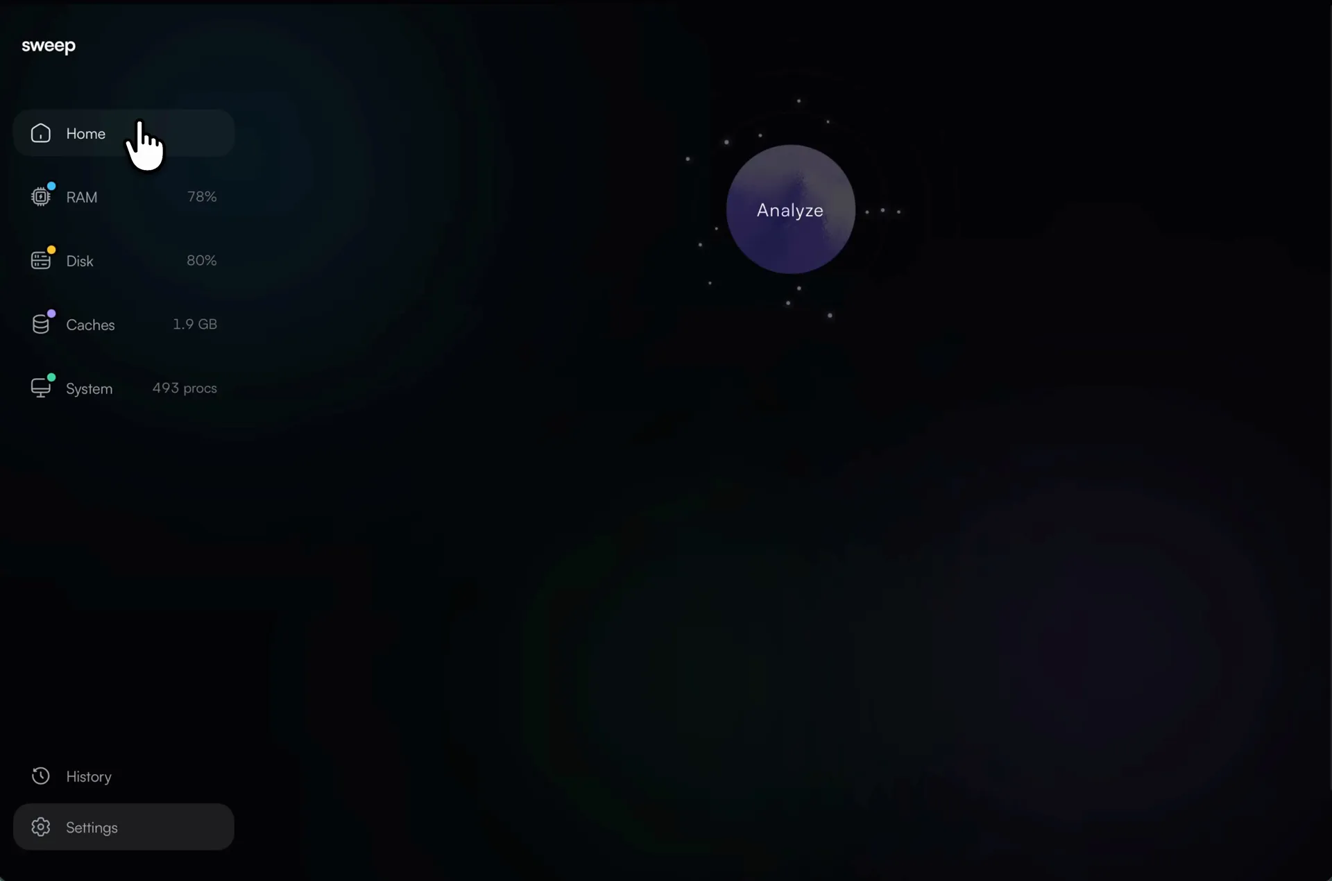 Open Sweep and just say "My computer is slow" or "I need more storage." The AI analyzes your system and finds exactly what's going on.